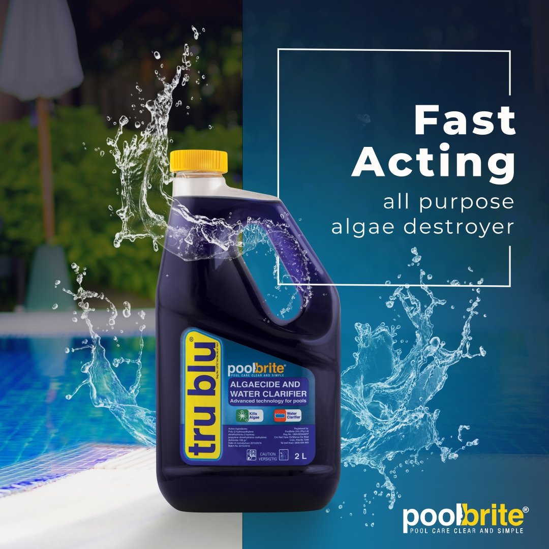 This Tru Blu Algaecide and Water Clarifier is a fast-acting, all-purpose algae destroyer that helps settle dead algae for a quicker clean-up, maintaining sparkling water.